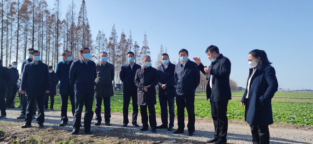 魏紅軍、胡兆輝一行深入蘇州蘇墾昆山陸家生產(chǎn)基地,現場(chǎng)考察油菜、小麥種植情況和烘干倉儲、未來(lái)智慧田園A+智能溫室等生產(chǎn)設施情況,并與公司領(lǐng)導班子座談。