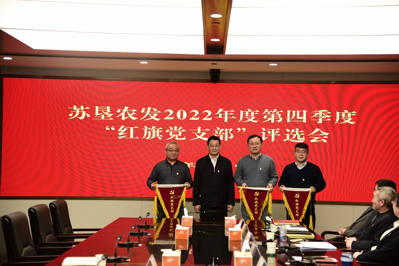 “紅旗黨支部”評選工作領(lǐng)導小組成員,公司總部各黨支部書(shū)記,大華種業(yè)、蘇墾米業(yè)、蘇墾農服總部各黨支部書(shū)記,蘇墾農科院、金太陽(yáng)糧油、蘇州蘇墾黨支部書(shū)記參加會(huì )議。